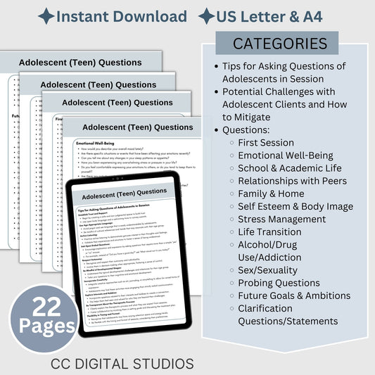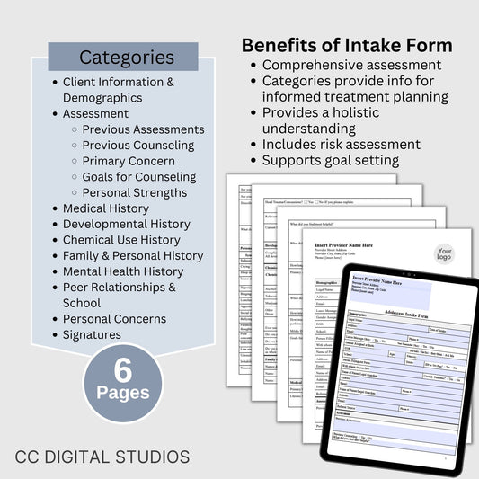 Adolescent Therapy Forms Bundle for Mental Health Professionals: Fillable PDF & Google Docs