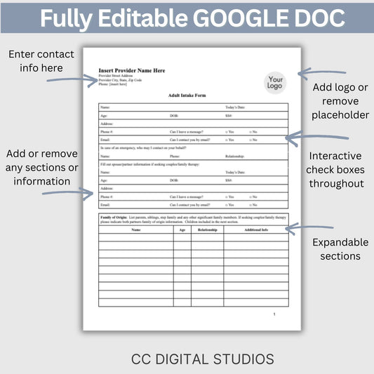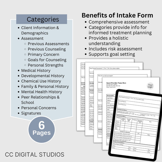 Adult Client Intake Template for Mental Health Practitioners: Streamline Workflow