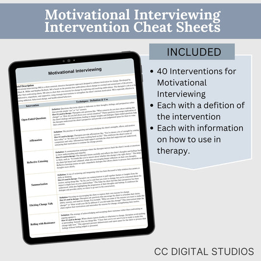 Motivational Interviewing Resource: Therapy Questions and Cheat Sheets for Counselors