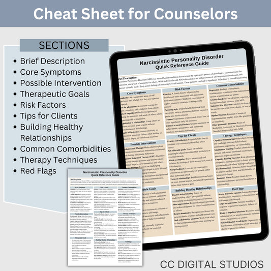 Narcissistic Personality Disorder Therapy Cheat Sheet: 2 IN 1 Psychoeducation for Client and Cheat Sheet for Counselors
