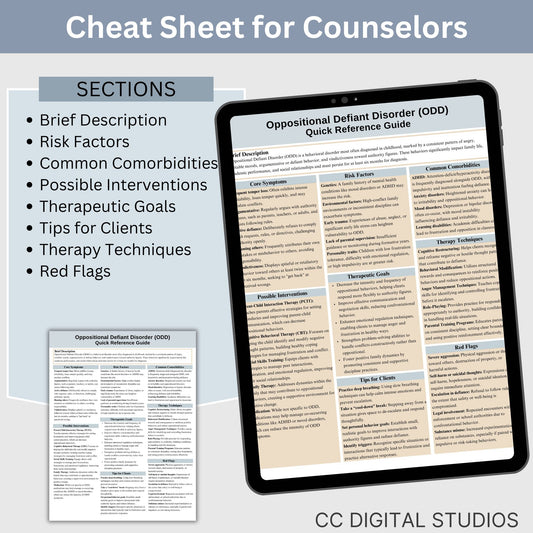 Oppositional Defiant Disorder Therapy Cheat Sheet: 2 IN 1 Psychoeducation for Client and Cheat Sheet for Counselors