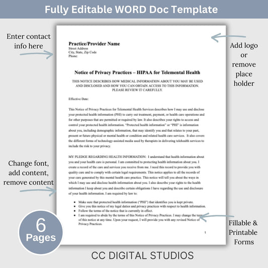 Notice of Privacy Practices - HIPAA Template for Mental Health Professionals