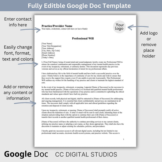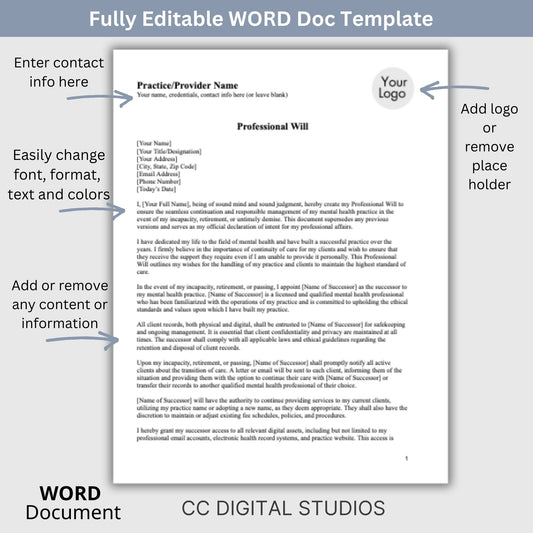 Professional Will Template for Mental Health Professionals: Ensure Practice Continuity