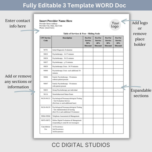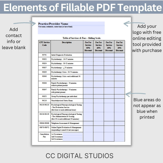 Sliding Fee Scale & Service Fees for Mental Health Clinicians