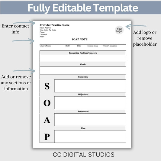 SOAP Progress Note Template for Mental Health Professionals