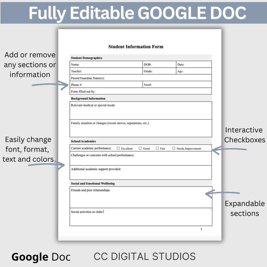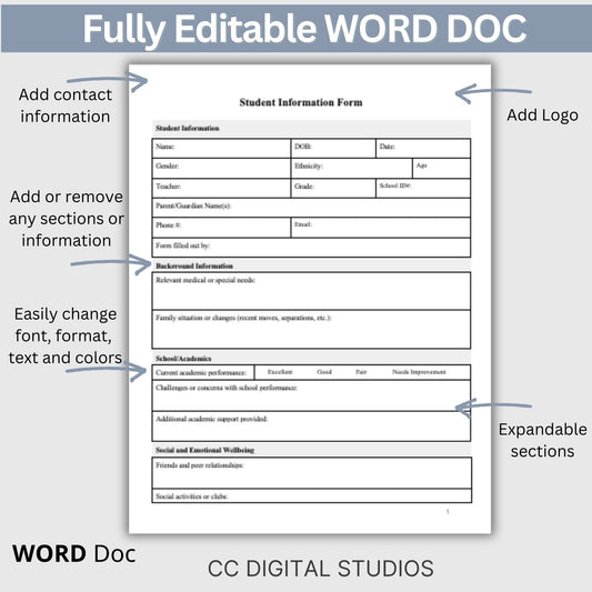 Student Information Form: Essential Tool for School Counselors and Psychologists
