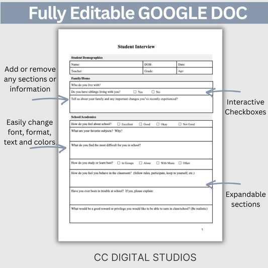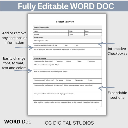 Student Interview Form: Essential Tool for School Counselors and Psychologists
