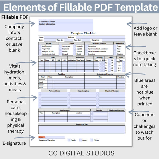 Caregiver Home Care Visit Checklist - Fillable PDF