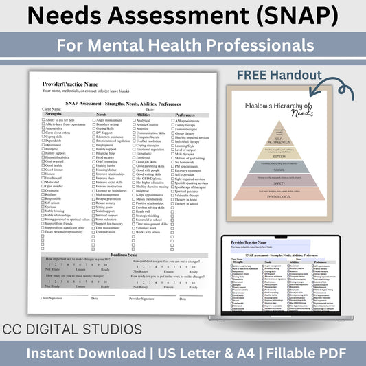 Case Manager Bundle: Progress Notes, Desktop Cheat Sheet, Needs Assessment, Care Plan Template