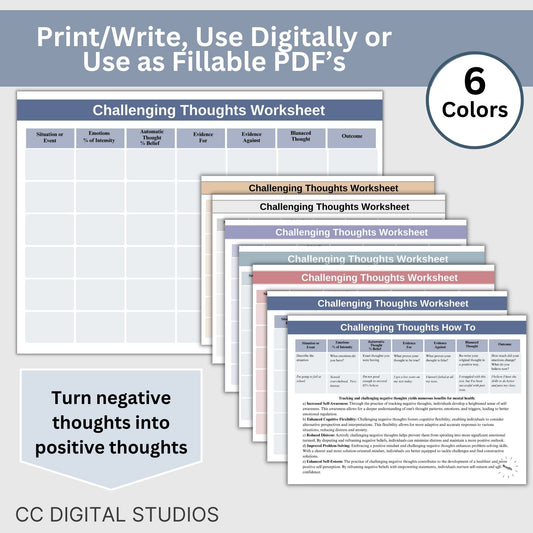 CBT Worksheets for Emotional Control & Positive Thoughts