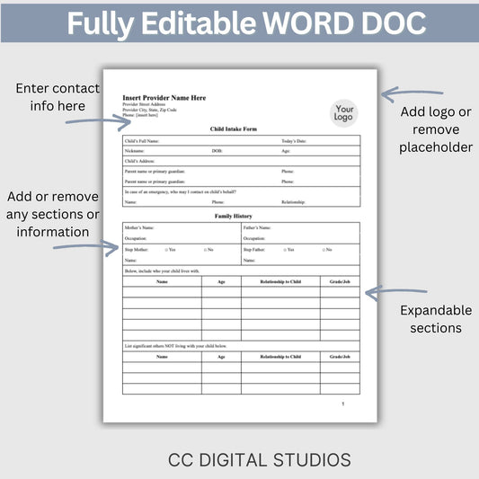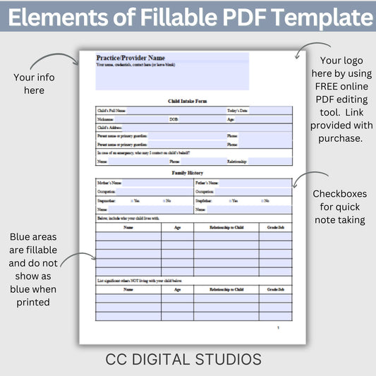 Child Intake Form: Simplify Your Therapy Sessions Fillable PDF
