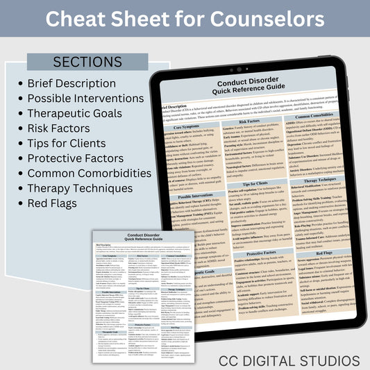 Conduct Disorder Cheat Sheet: 2 IN 1 Psychoeducation for Client and Cheat Sheet for Counselors