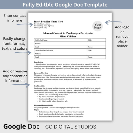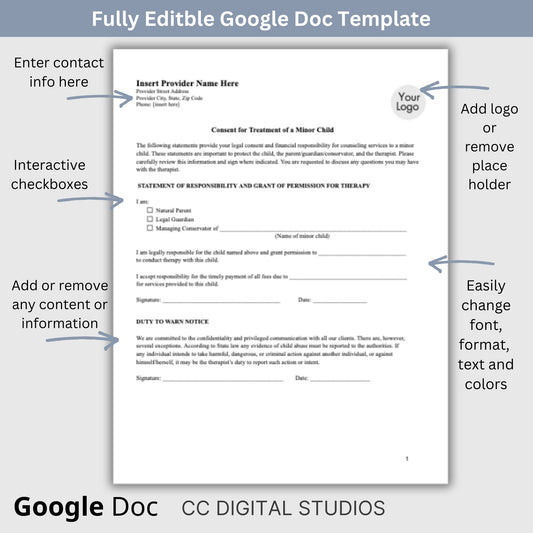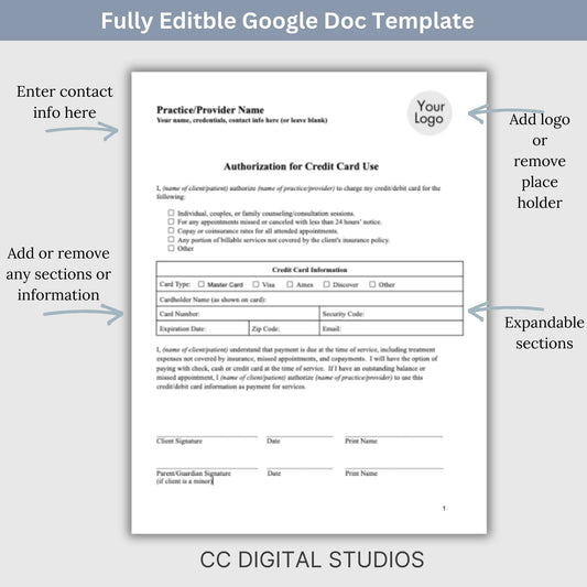 Credit Card Authorization Template: Editable Google Doc for Mental Health Professionals