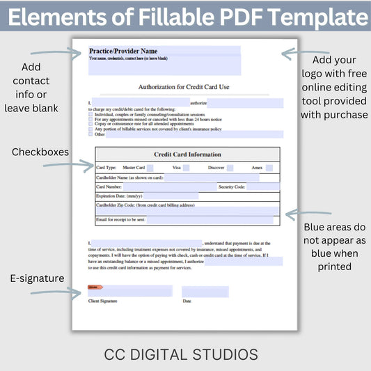 Credit Card Authorization Template: Fillable PDF for Mental Health Professionals
