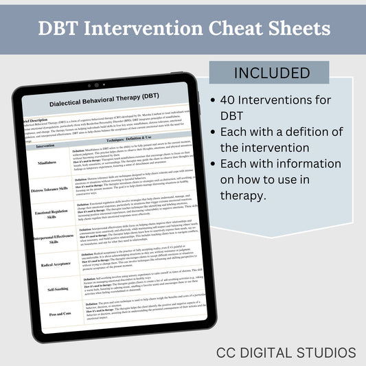 DBT Therapy Interventions List Cheat Sheet