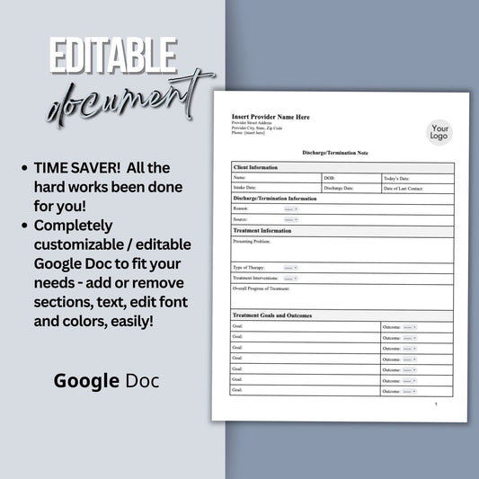 Discharge Note for Therapist Office: Streamline Private Practice Documentation