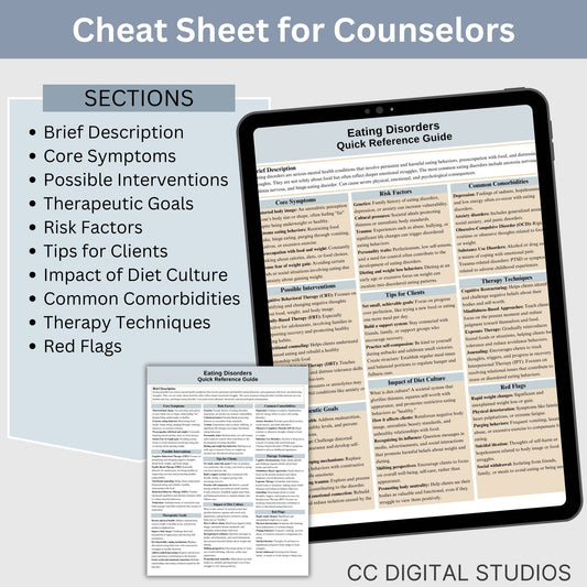 Eating Disorder Therapy Cheat Sheet: 2 IN 1 Psychoeducation for Client and Cheat Sheet for Counselors