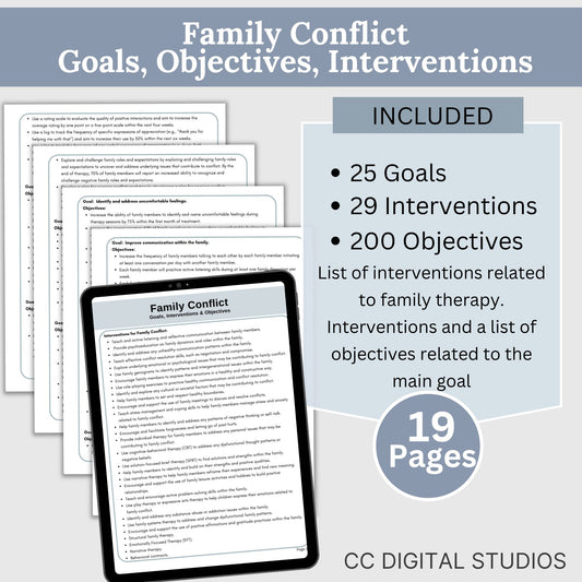 Family Conflict Treatment Plan Therapy Tool: Goals, Objectives, Interventions