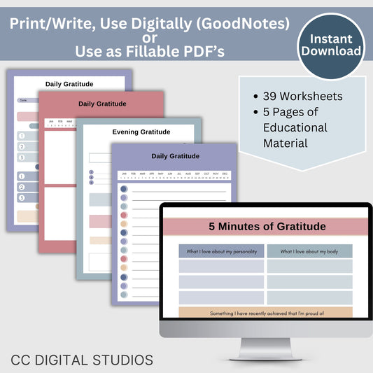 Gratitude Journal with Worksheets for Therapy, Wellness, and Positive Thinking