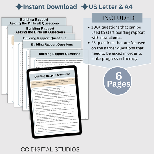 Therapy Questions to Build Rapport, Therapy Cheat Sheet, Therapy Session Questions Reference Sheet