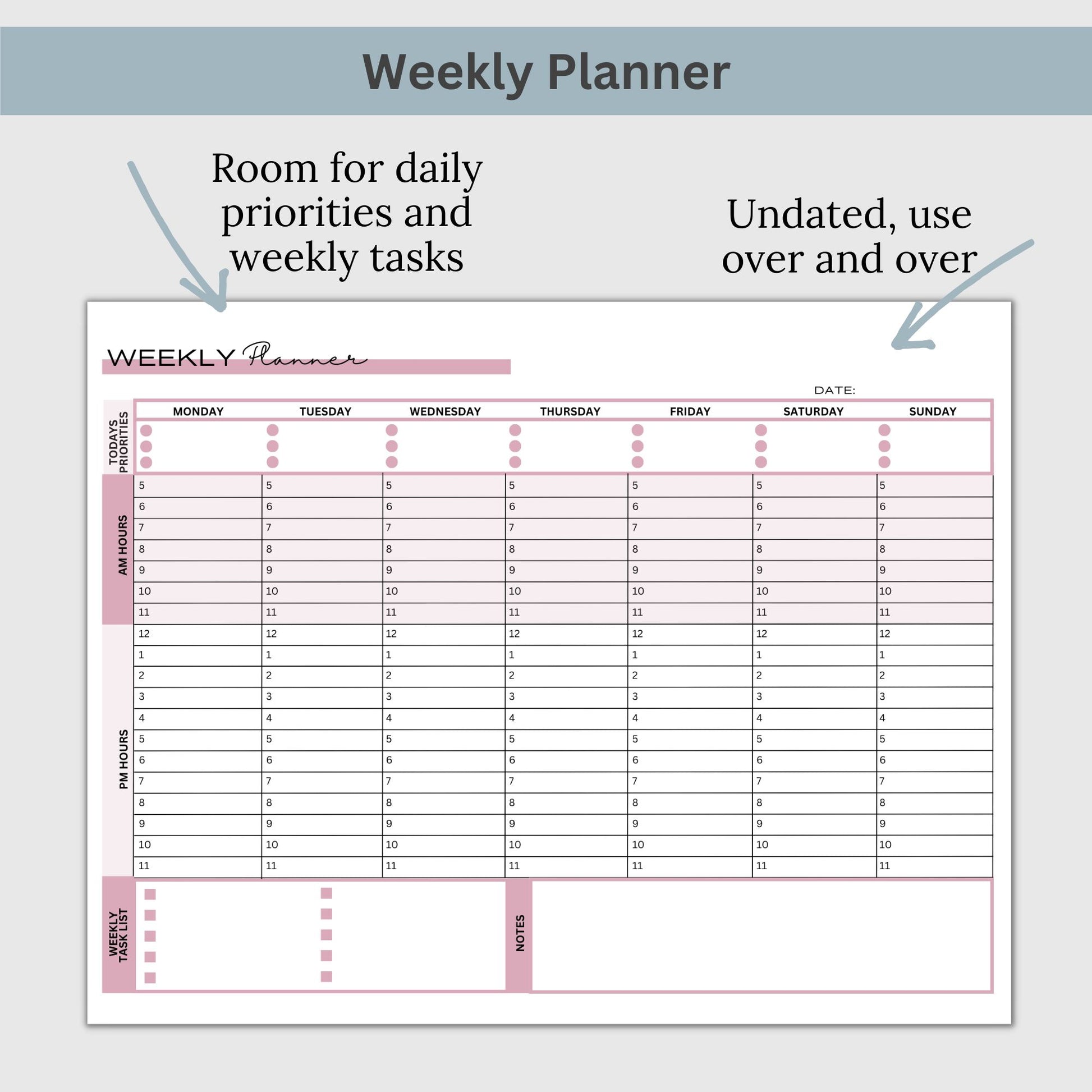 Get ready to boost your productivity and conquer your week with this beautifully designed fillable weekly planner. Whether you're a busy professional, a diligent student, or a super-organized individual, this planner is your secret weapon to stay on top of your game.