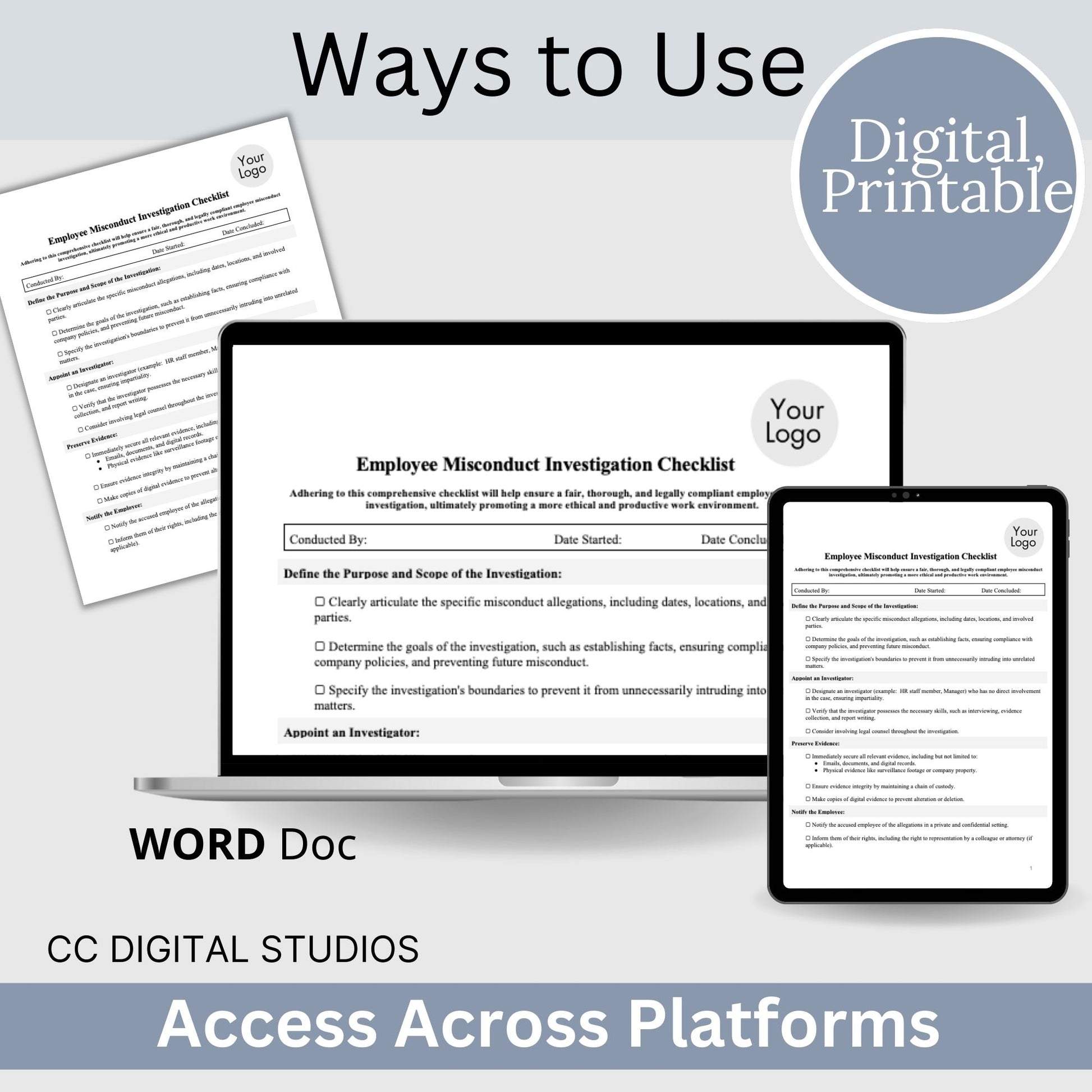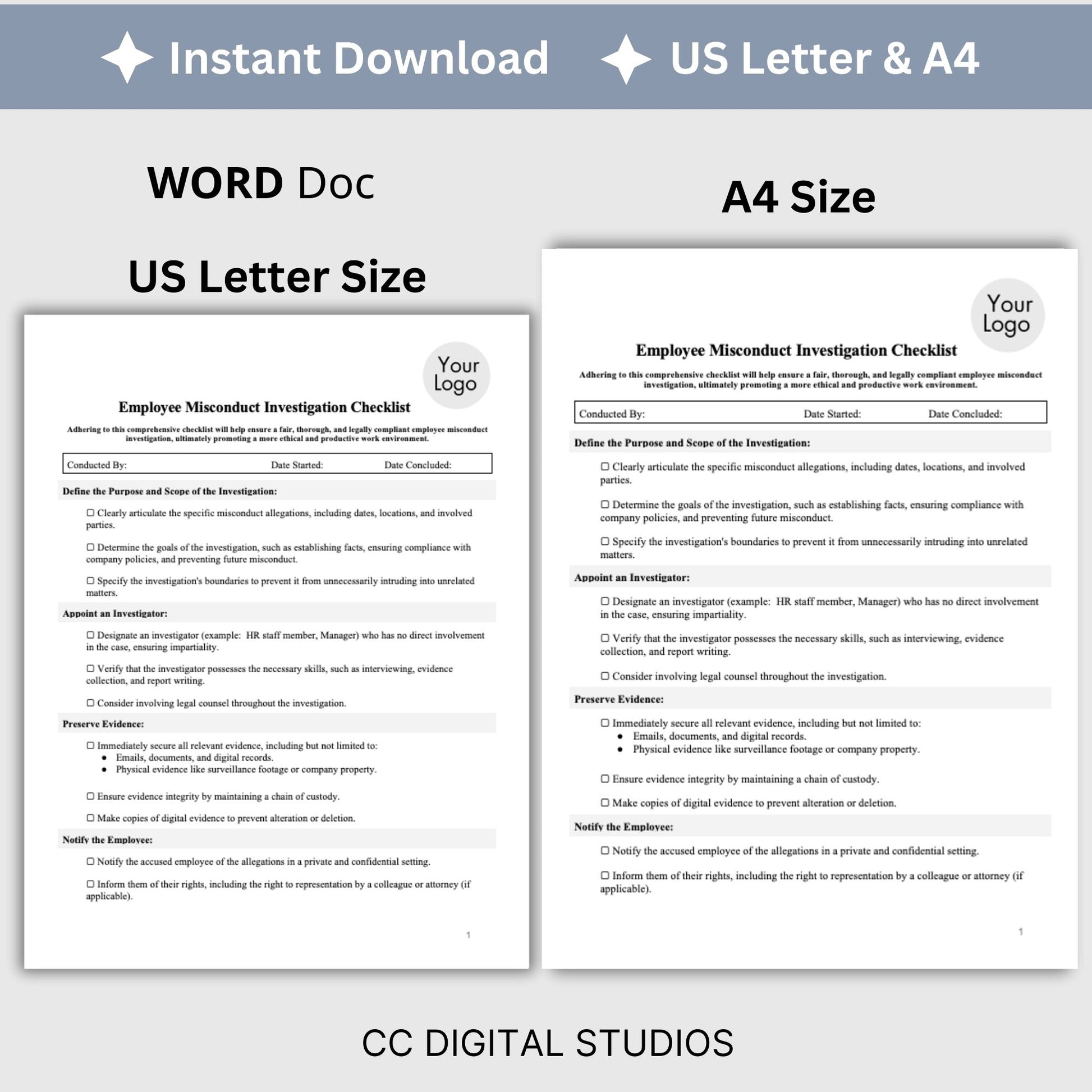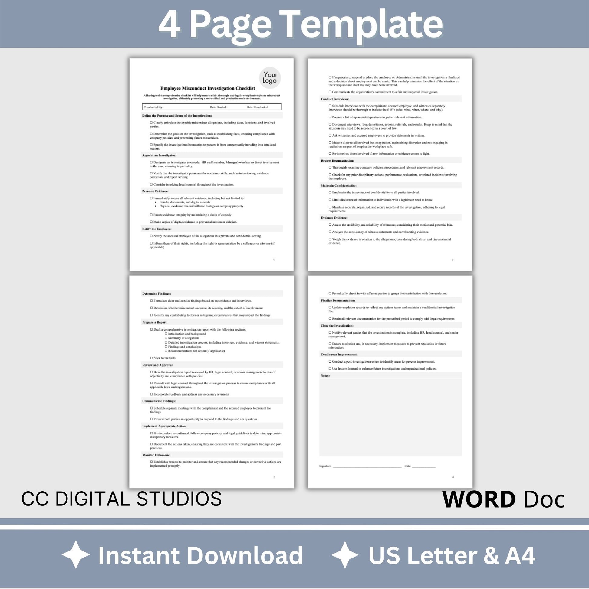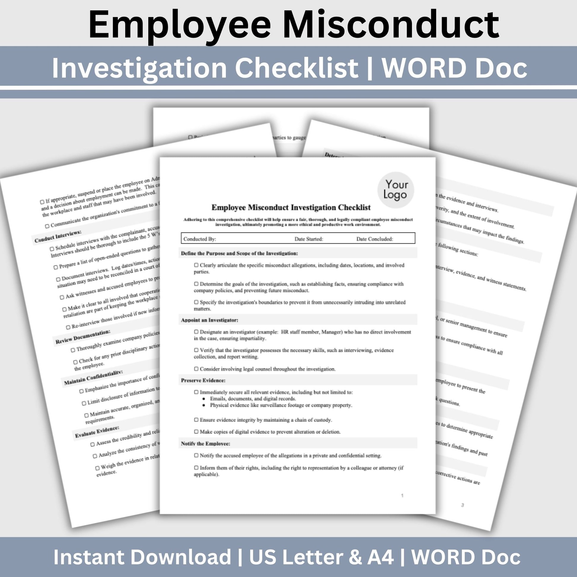 Employee Misconduct Investigation Checklist (Fully Editable WORD Doc). Are you an HR professional or manager seeking a comprehensive and customizable tool to conduct thorough employee misconduct investigations within your organization? Look no further! Our Employee Misconduct Investigation Checklist, available as a fully editable WORD Doc, is designed to provide you with a standardized, step-by-step roadmap for conducting fair, transparent, and effective investigations.