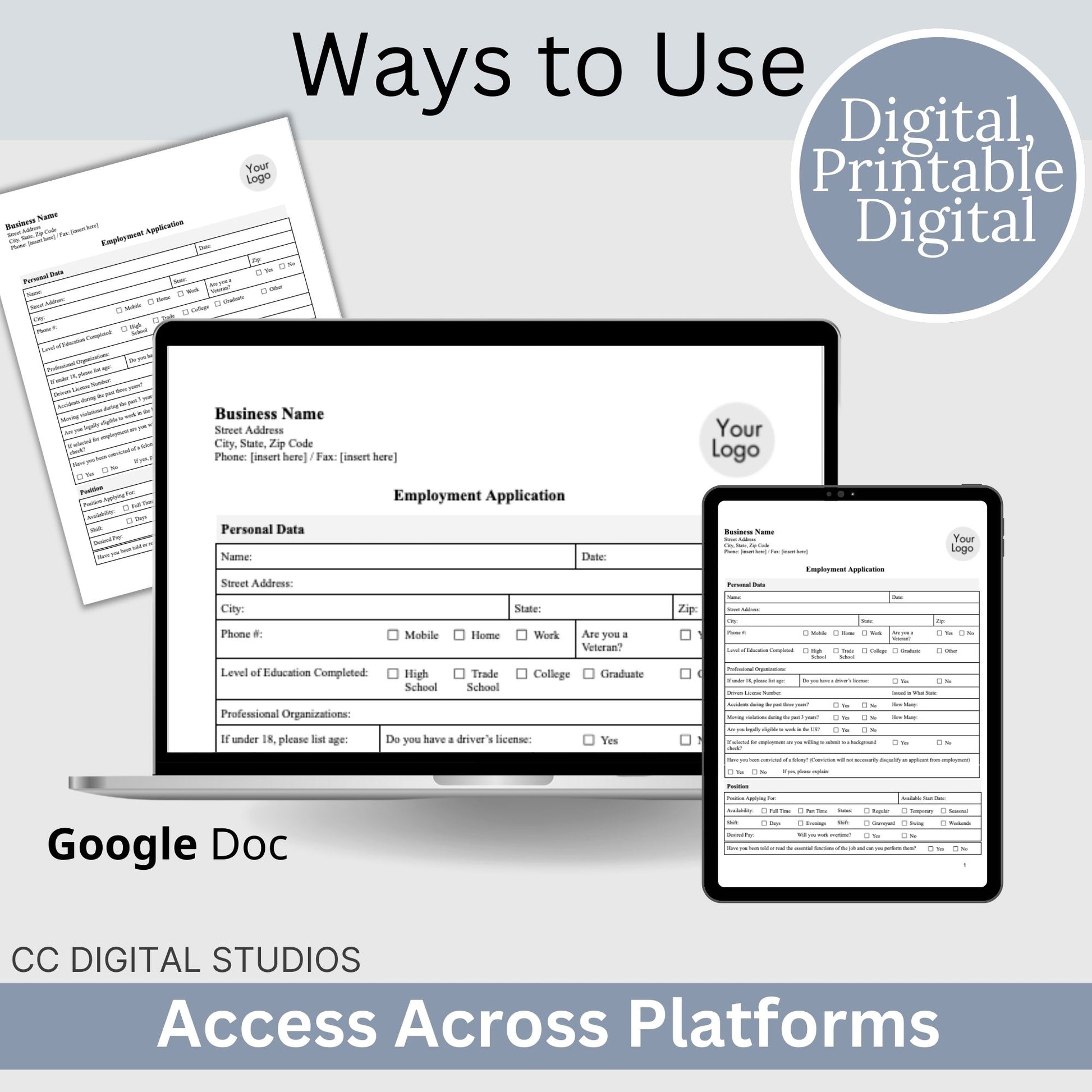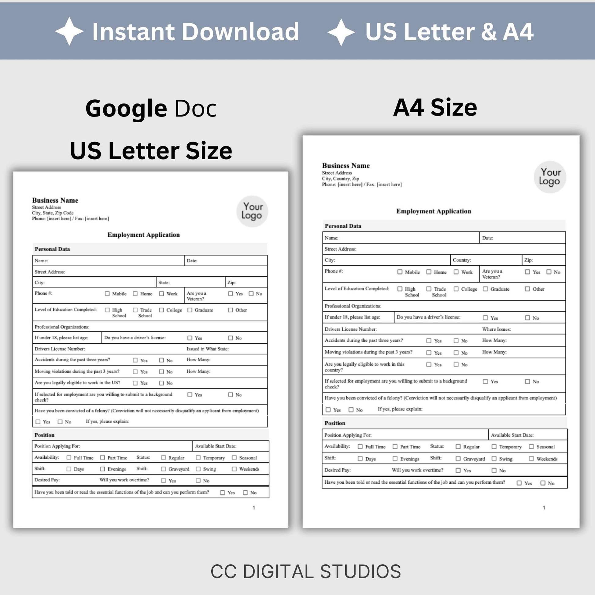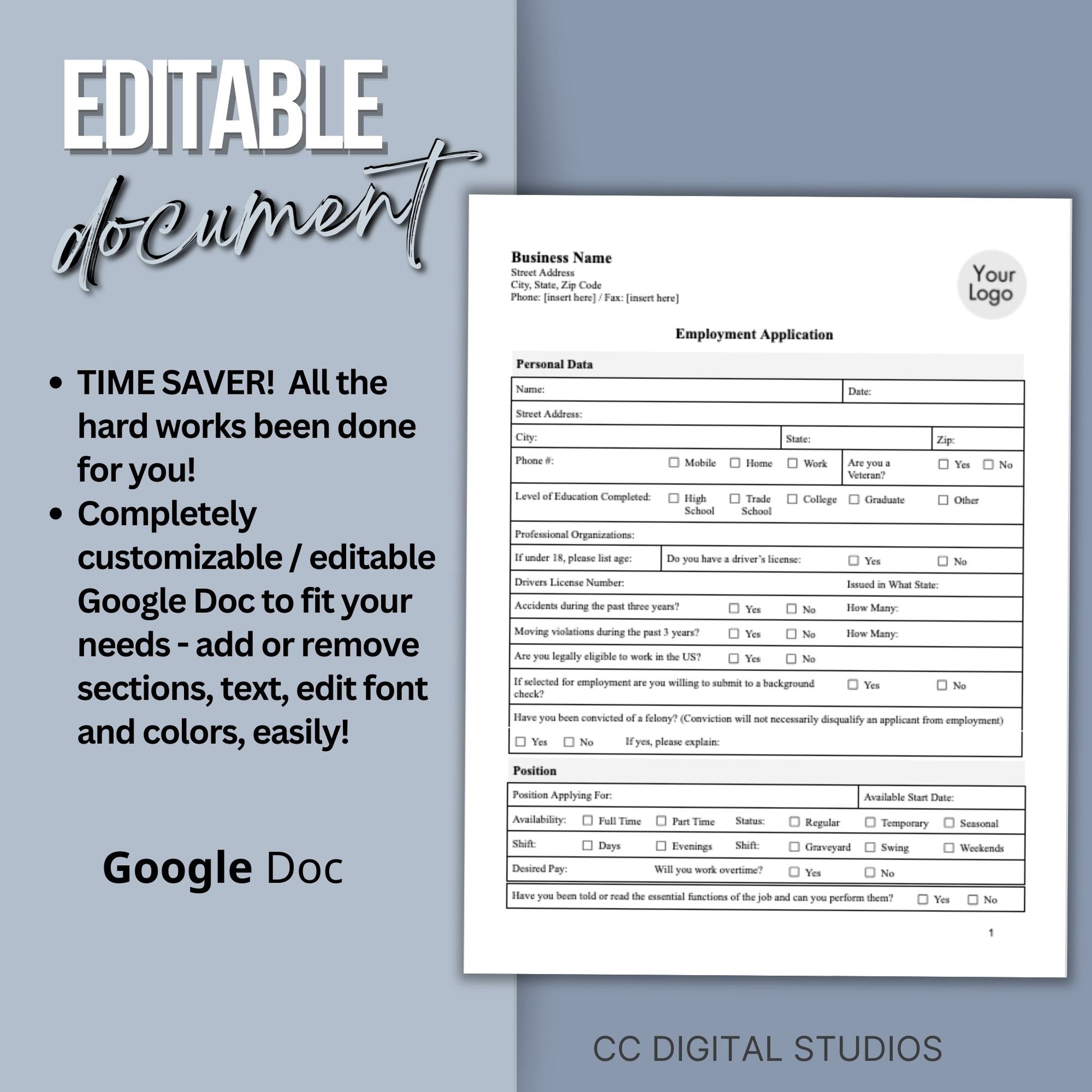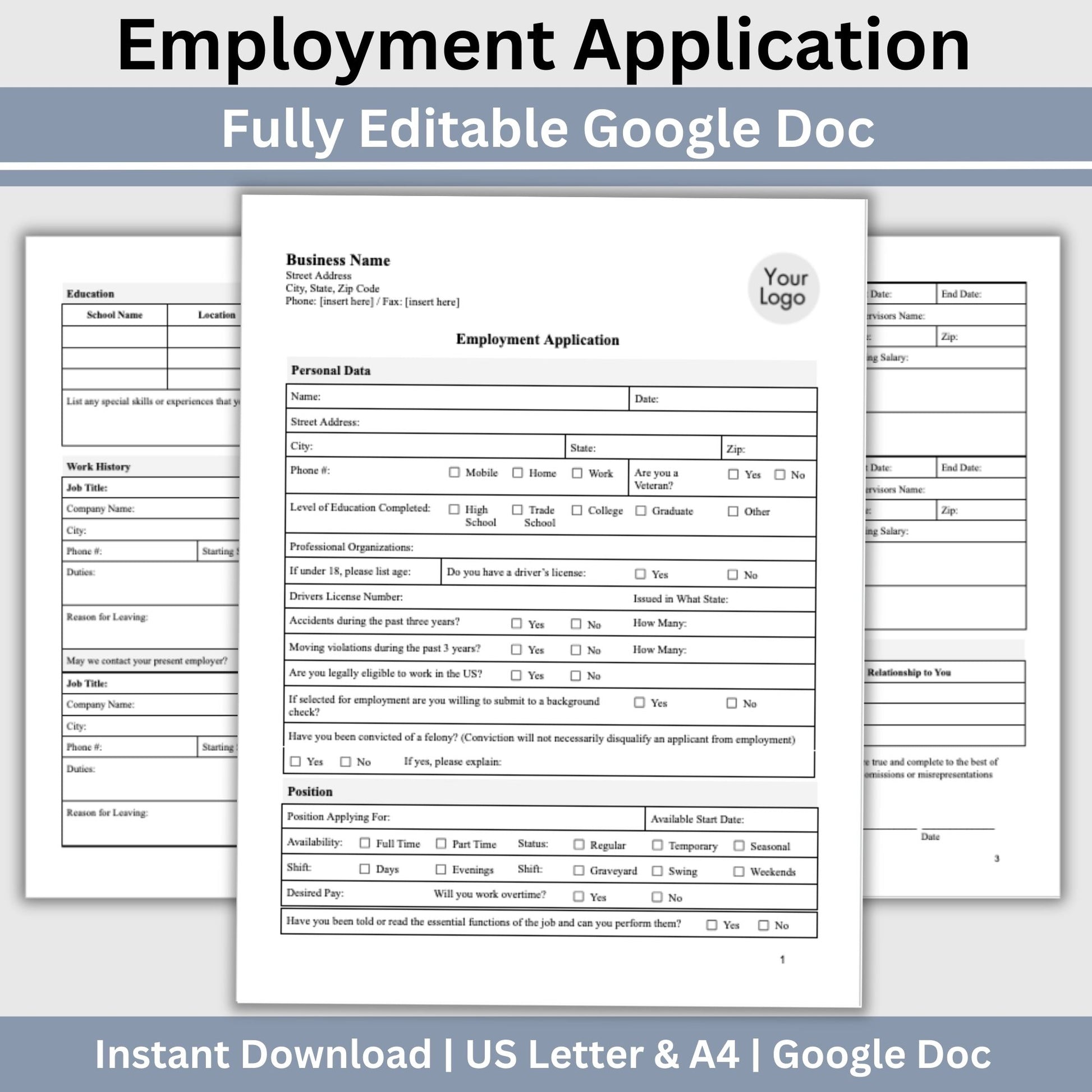 Employment application template, designed as efficient tool to simplify your hiring process. Our fully editable Google Docs employment application template is here to streamline your recruitment efforts and help you find the ideal candidate with ease.