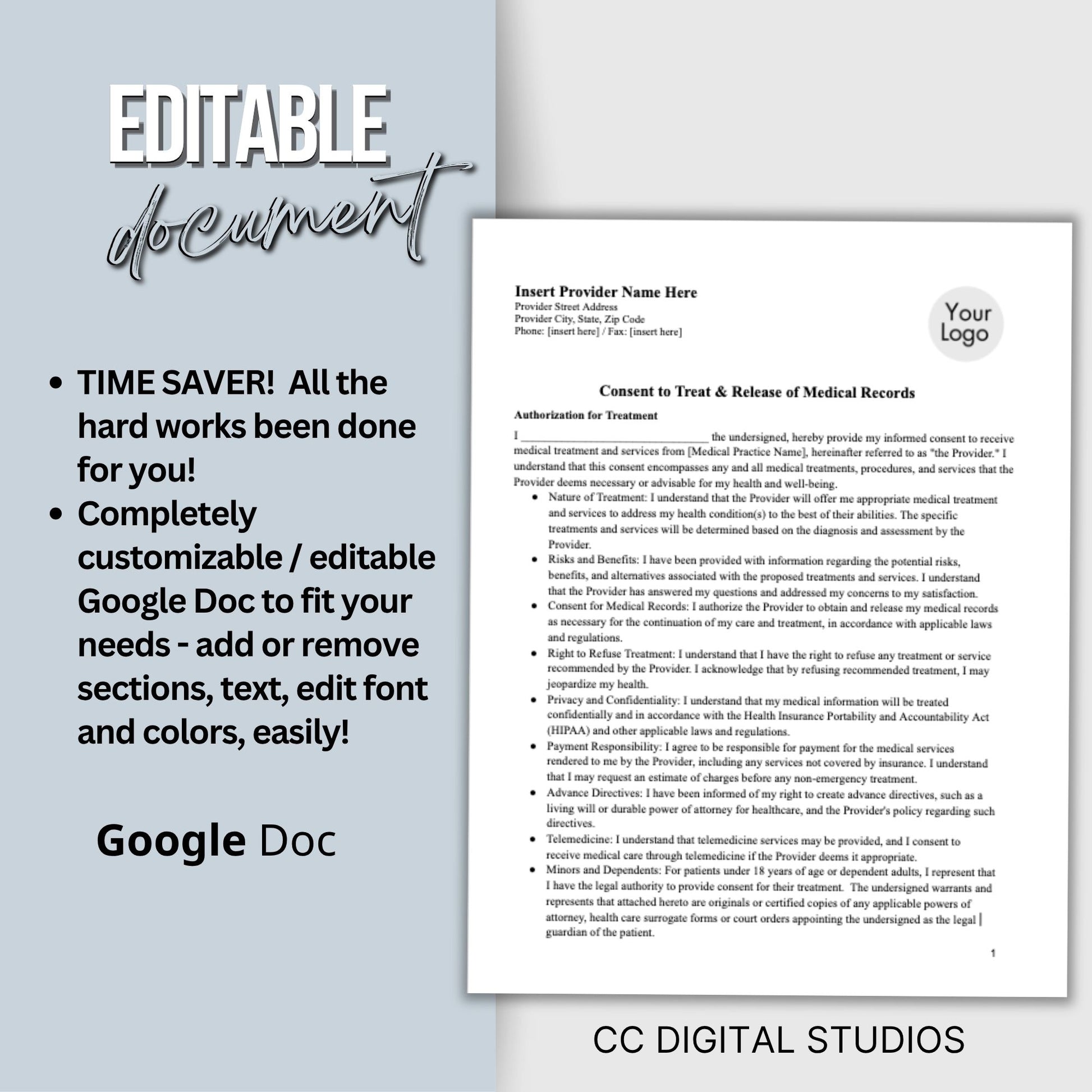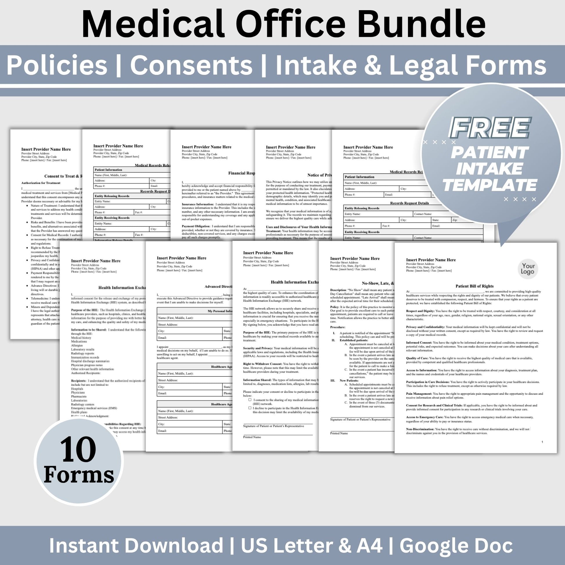 Equip your medical or healthcare practice with our Medical Forms Template Bundle, a premium digital download designed for seamless patient documentation. This editable Google Doc bundle includes essential clinic forms to streamline records management.