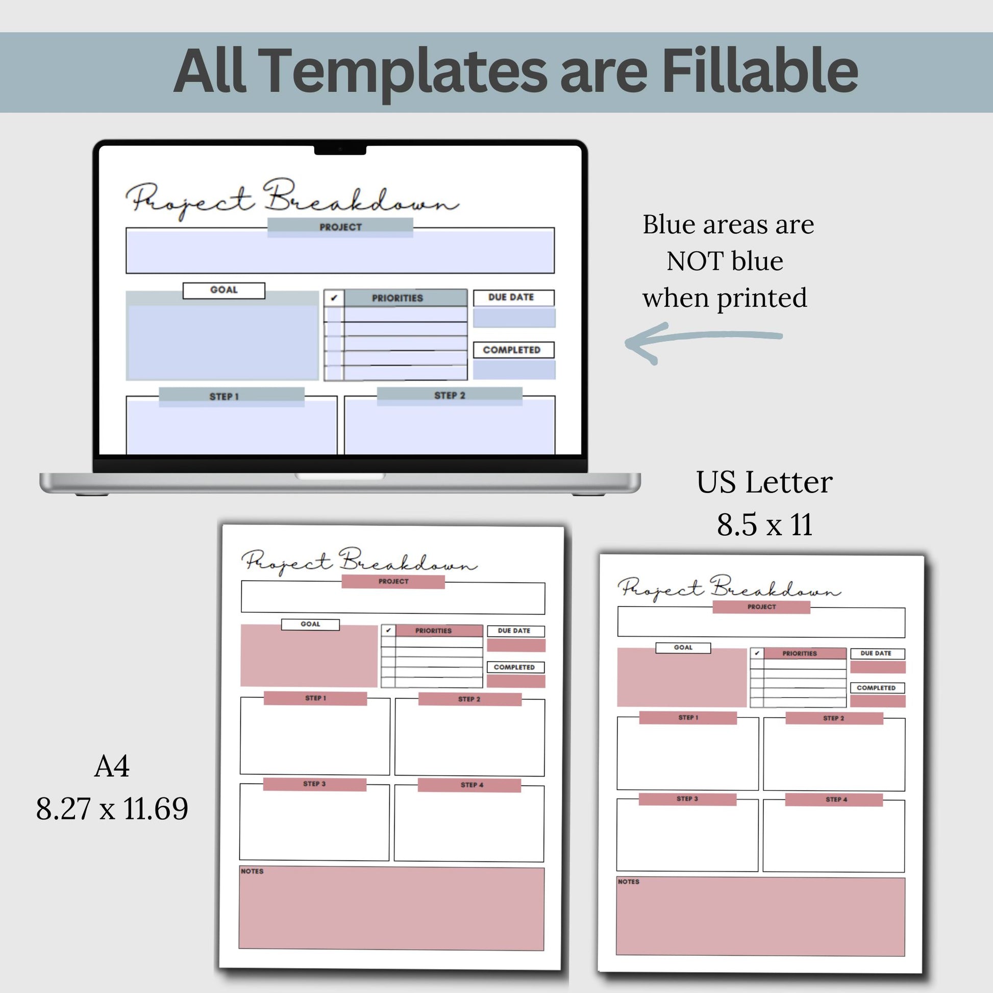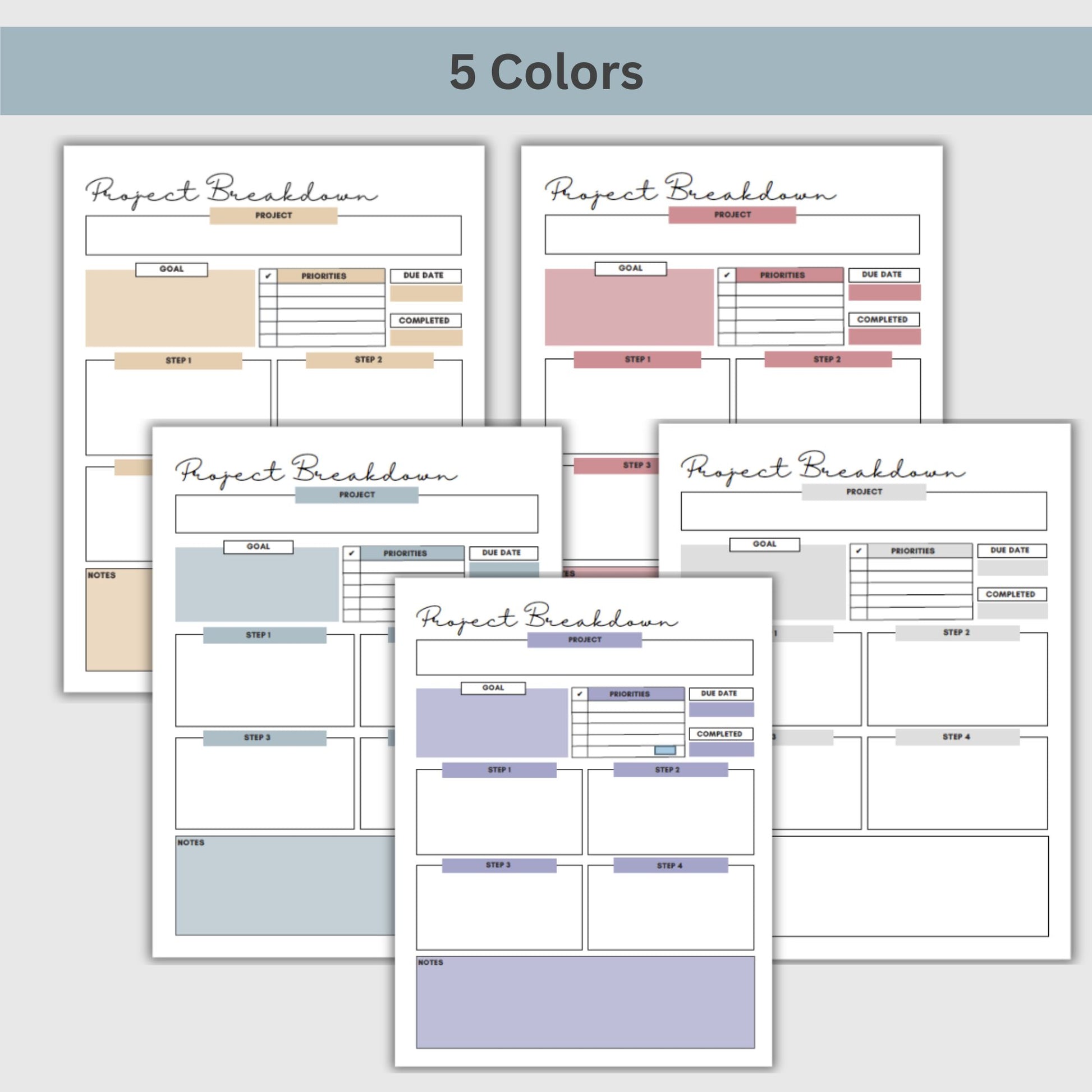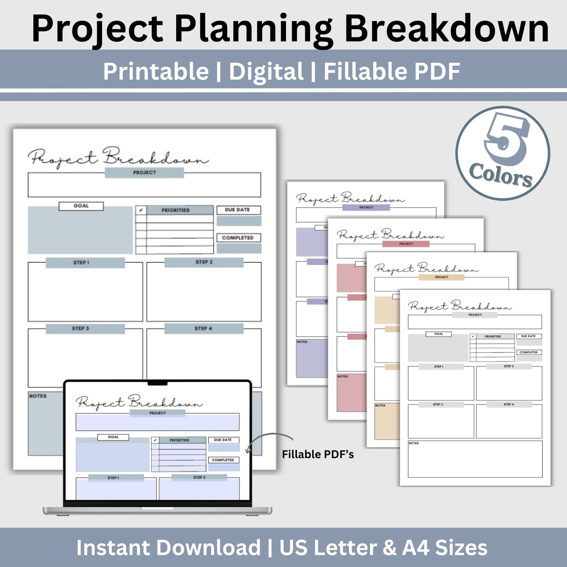 Efficient one-page project planning and step breakdown template, designed to help you stay organized and focused on your projects like never before. This minimalistic template is perfect for you to streamline your project management process and achieve your goals with ease.