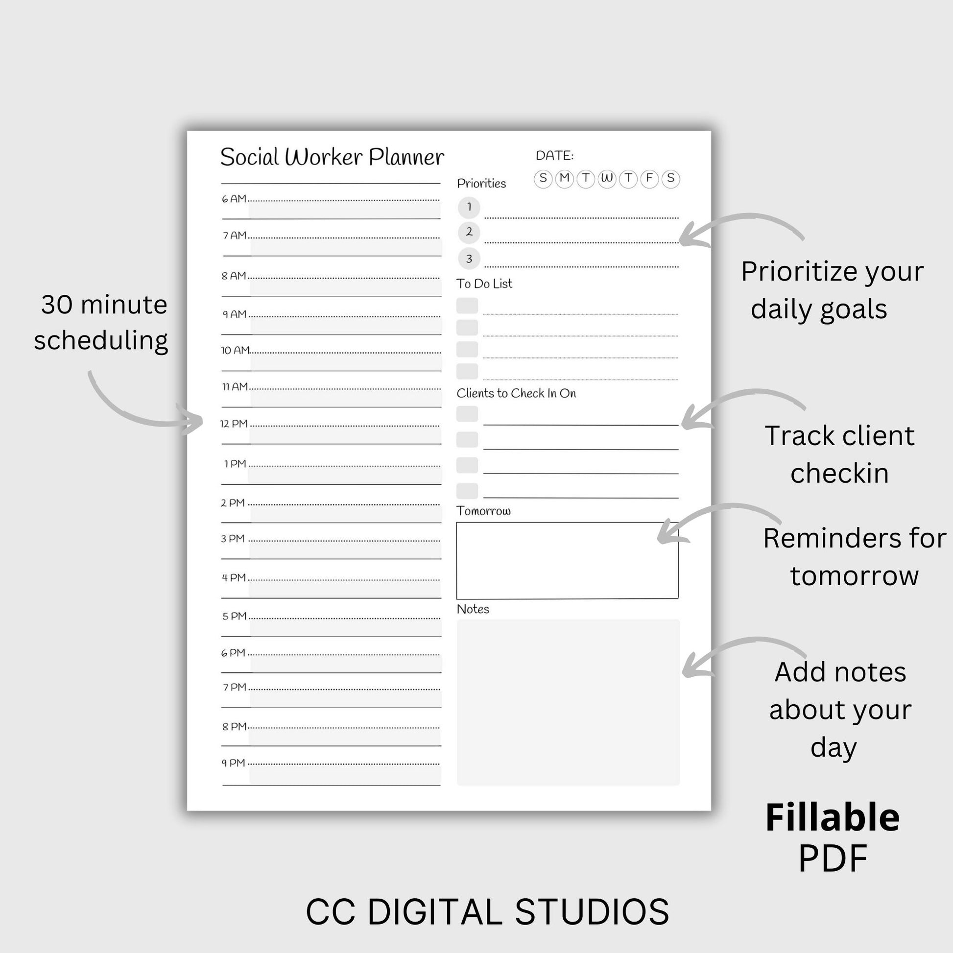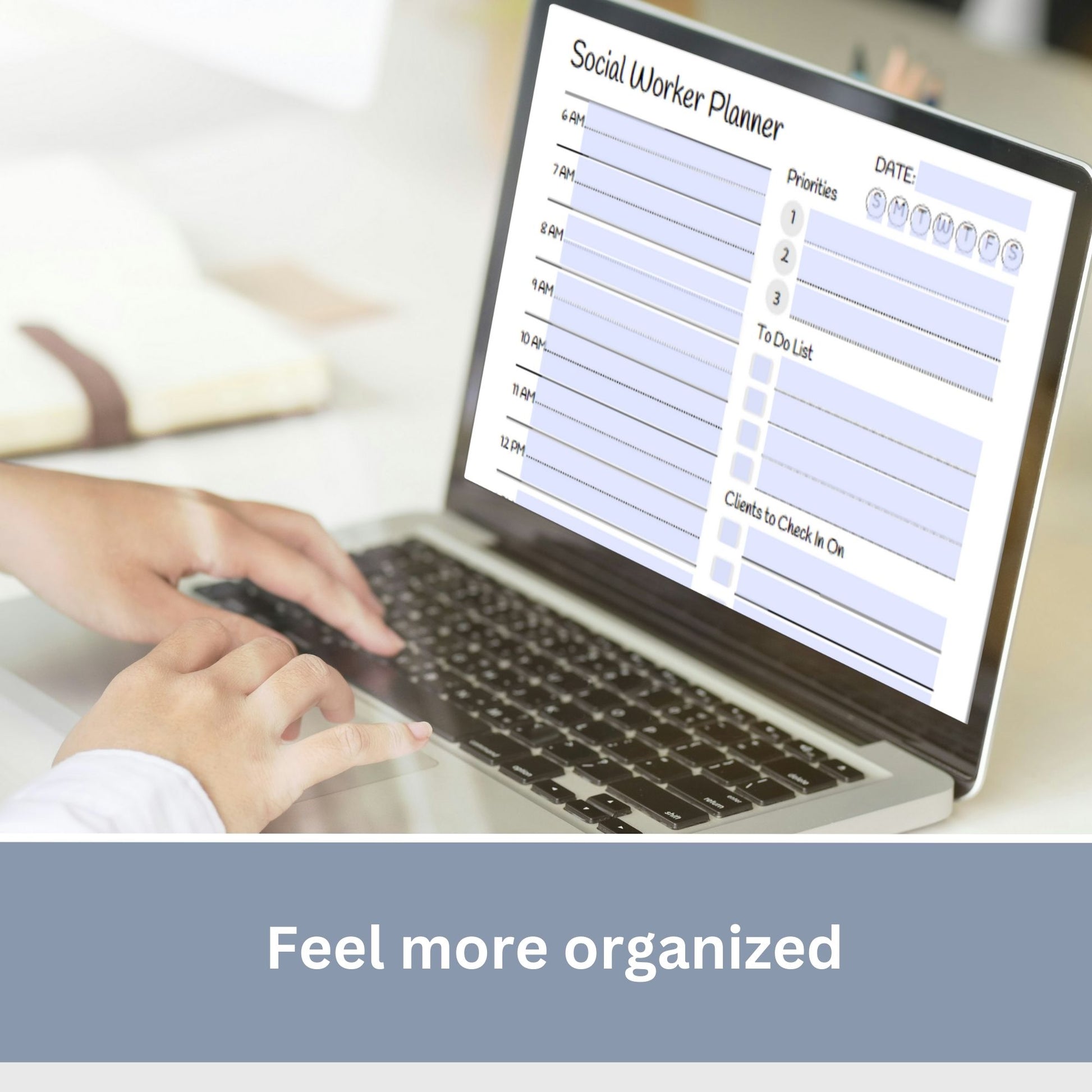 Get organized with this 30-minute daily planner designed specifically for social workers! Clear and concise layout ensures you stay focused and on track. The planner includes 30-minute increments, allowing you to schedule appointments, plan therapy sessions, add notes, follow up and more.