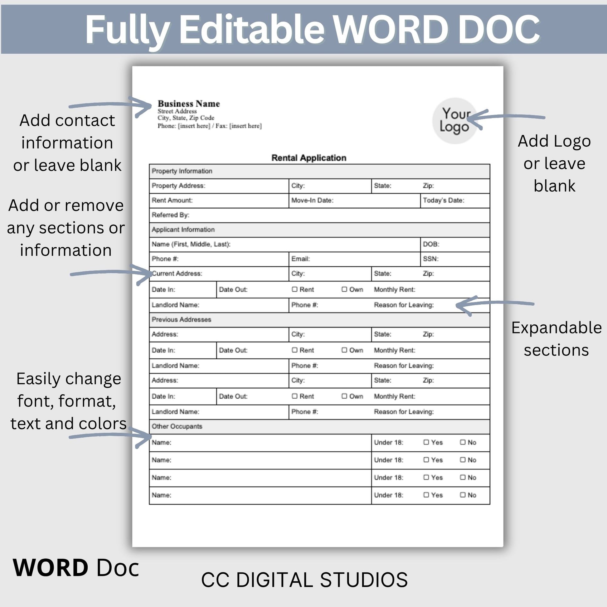 ➔Editable WORD Document - ❗️You will need to use this form in Microsoft WORD.